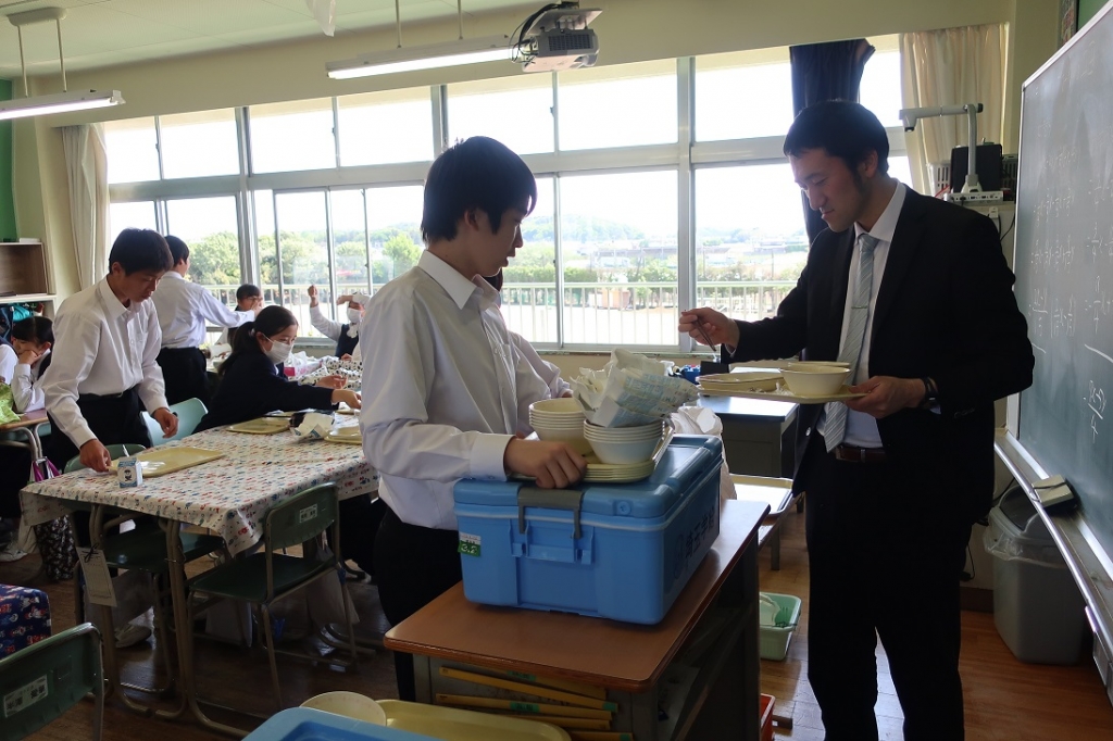 2年生の片付けの様子です。このクラスでは、班員によるじゃんけん大会?で食器を運ぶ人を決めているみたいで、盛り上がっていました。手際よく片付けをしていました。