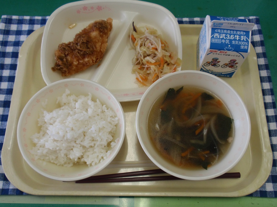 ごはん 牛乳 サワラの明太マヨ焼き 骨太サラダ スタミナスープ エネルギー:585kcal たんぱく質:27.2g 脂質:19.7g 炭水化物:79.6g 食塩相当量:2.3g