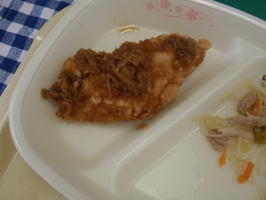鶏肉の南蛮漬けは、片栗粉をつけた鶏肉を揚げてネギやすりごまがたっぷりのたれをかけています。ぴりっと辛いたれがよく合いおいしかったです。