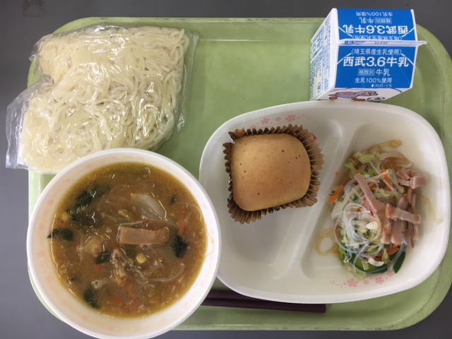 ごま味噌ラーメン・中華風蒸しパン・春雨サラダ・牛乳でした。