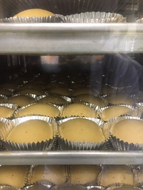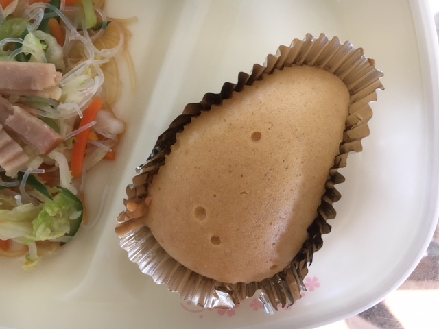 いつものパンケーキは鉄板に生地を流し込み焼きますが、今日は蒸しパンなのでアルミカップに入れてもらい蒸しました。そうすることで、ふんわりとなり冷めても堅くならなかったです。