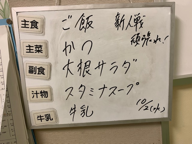今日は、新人戦応援メニューのかつ丼とスタミナスープです!!