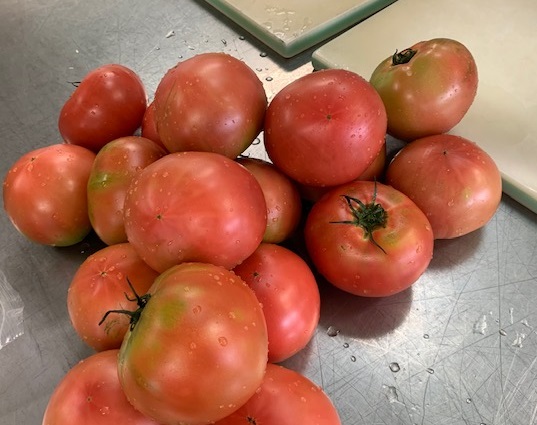 トマトは、調理員さんが十字に切れ込みを入れて、湯むきしてくれています。