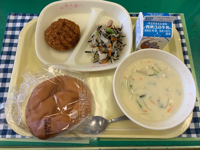 今日の給食 チンゲンサイのクリームスープ