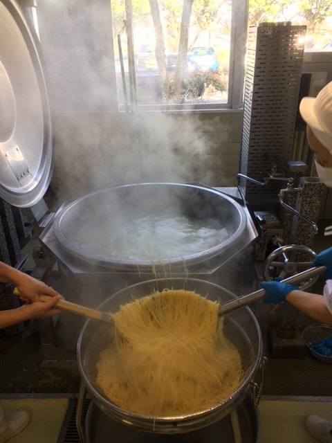 スパゲティーは、調理員さんの息がぴったりあわないとできないメニューの一つです。