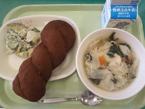 今日はバレンタインデーにちなんでココア揚げパンにしました。