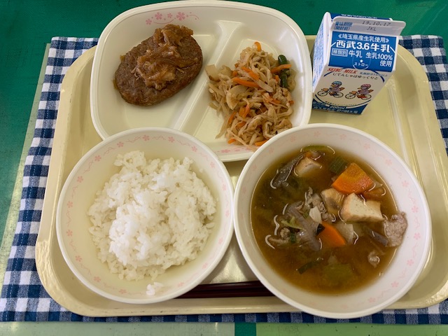 デミカツ丼 牛乳 かきたま汁 花みかん エネルギー:606kcal たんぱく質:26.4g 脂質:17.2g 炭水化物:88.4g 食塩相当量:1.8g