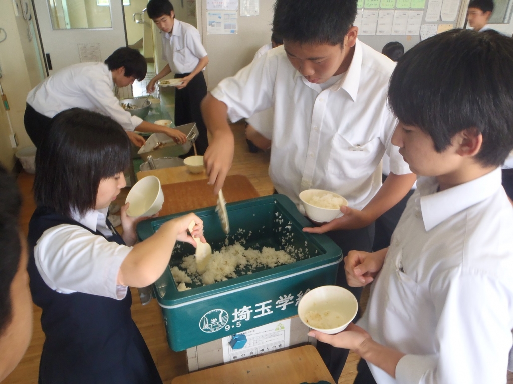 皮の部分や小さい部分は、おまけとして各クラスにお裾分けにいきます。15クラス(今日は、4階の1年生までいけず・・・次回は、優先的にいきますね)もあるので、最後の方のクラスは13時10分と給食終了5分前。「先生おそーい!!」と熱烈な?男子に迫られながらも、残っていたみそ汁とセットで渡しました。