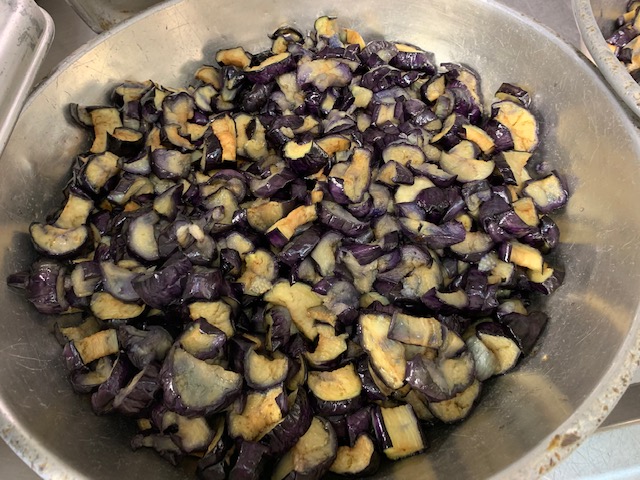 今日は、夏野菜を使用したカレーです。なすとかぼちゃがたくさん入っています!