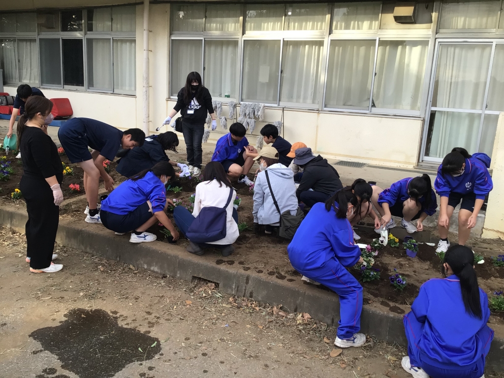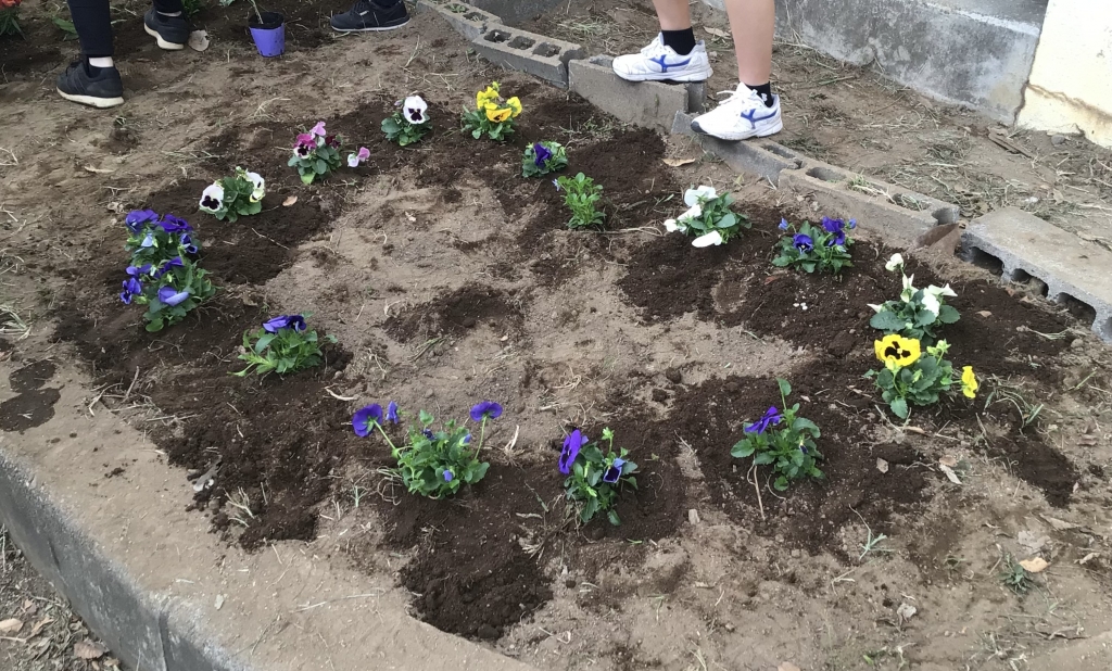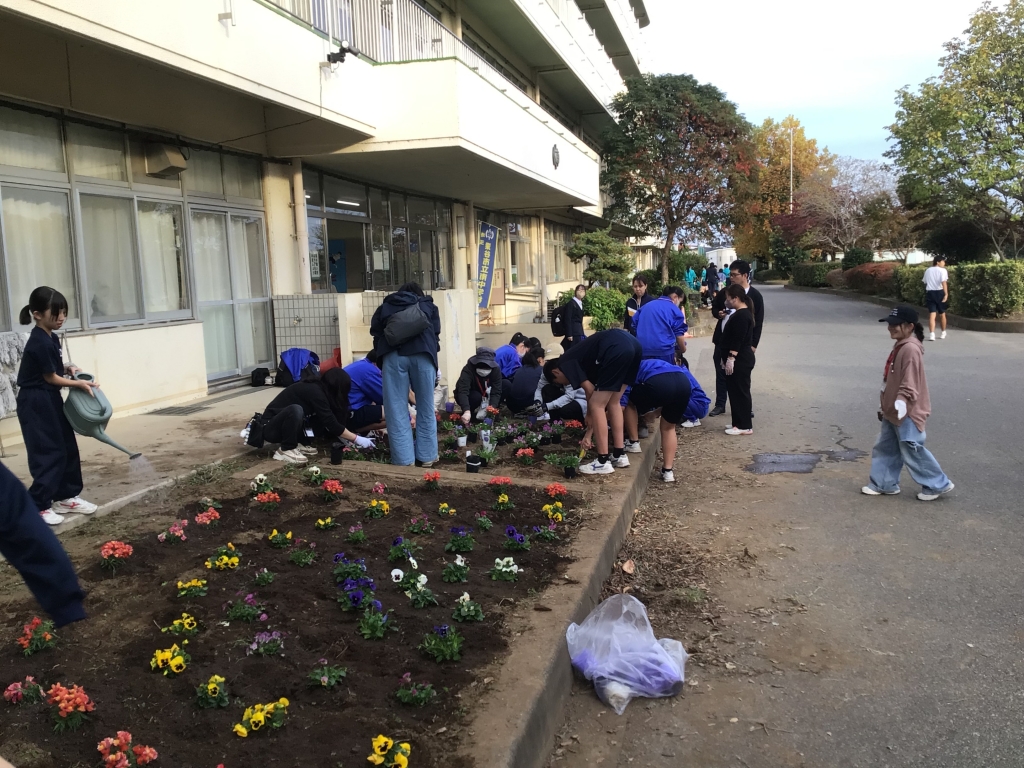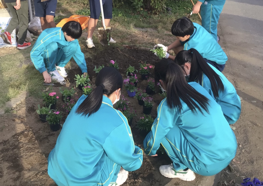 美化緑化委員会が中心となり、PTAの役員さんにも協力していただき、素敵な花壇が完成しました。