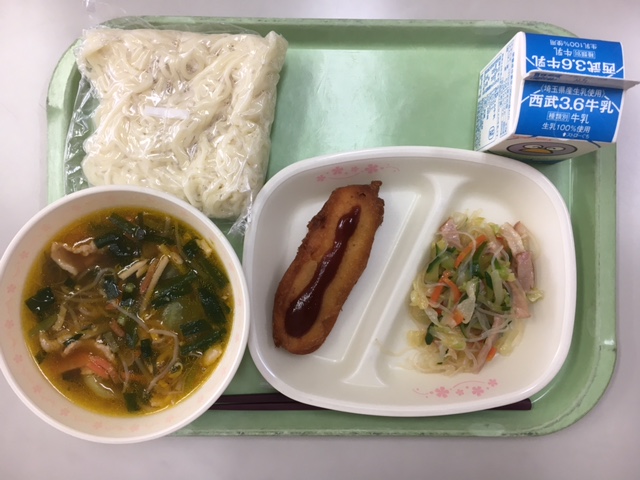 広東めん・アメリカンドッグ・春雨サラダ・牛乳