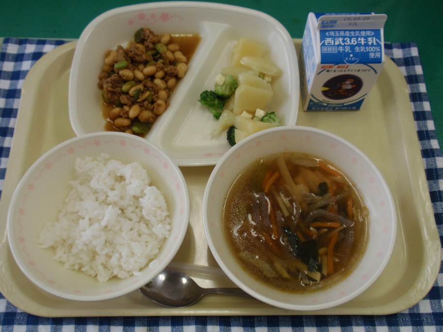 ソイ丼は、久しぶりのメニューです。大豆を1時間ほどかけて、じっくりコトコト煮ることで味をよ~くしみ込ませています。カレー粉が効いていて、ごはんがすすむ味ででした。枝豆とピーマンが入っているので彩もきれいです。
