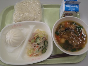 今日の給食の彩の国肉まんは、埼玉県産の豚肉や小麦粉を使用しており、