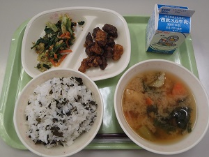 今日も定番の献立です。ただ、献立予定表では、磯の香あえ