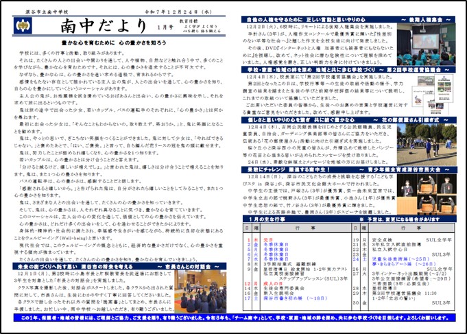 冬休みも規則正しい生活を心がけ、3学期の始業式には元気な顔を見せてください。