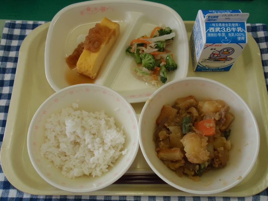 今日は、久しぶりに肉じゃがでした。ほくほくのじゃが芋にしっかり味が染みていてました。とっても暑い中、調理員さんは大量の具を混ぜて肉じゃがを作ってくれています!!