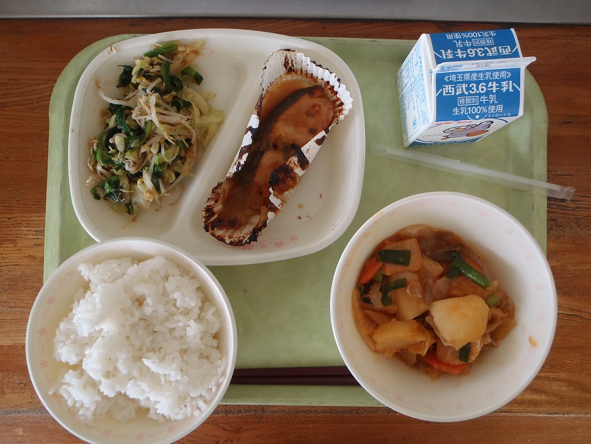 じゃが豚キムチは、いつもの肉じゃがにキムチとにらが入ったいつもとひと味ちがったメニューでした。じゃがいもがほくほくで味がしみていました。鮭のねぎみそ焼きは、みそが少し焦げてしまいました・・・