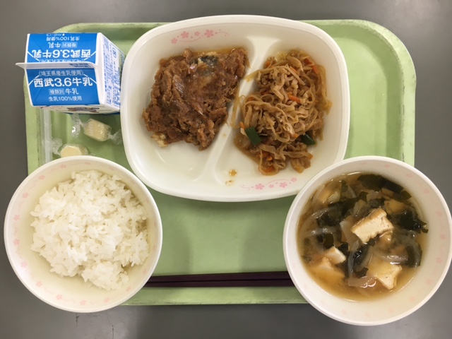 ごはん・白身魚の南蛮漬け・切り干し大根の炒り煮・じゃが芋と玉ねぎのみそ汁・牛乳