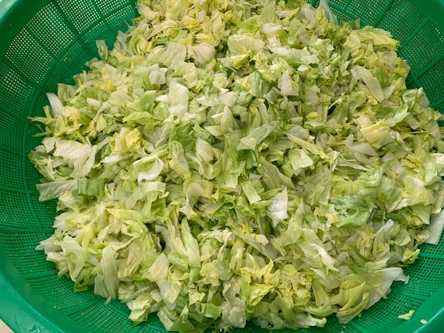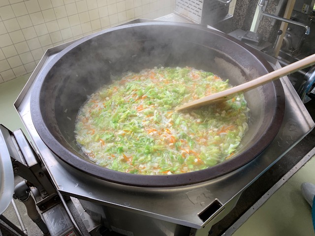 今日のスープは、レタスの入ったスープです。コンソメであっさりと味付けしてあります。