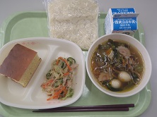 しょうゆラーメン・さつまいもとチーズのパンケーキ・ 中華サラダ