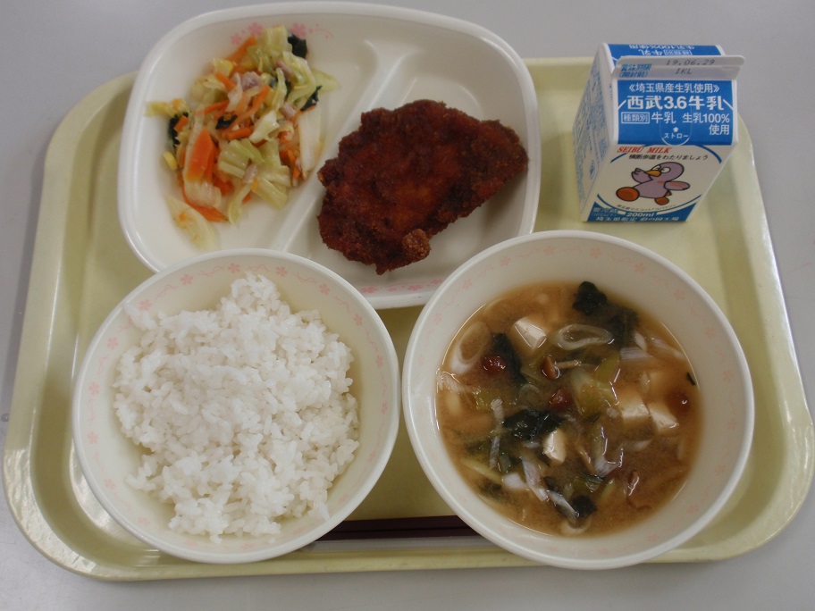 ごはん 牛乳 サワラの明太マヨ焼き 骨太サラダ スタミナスープ エネルギー:585kcal たんぱく質:27.2g 脂質:19.7g 炭水化物:79.6g 食塩相当量:2.3g